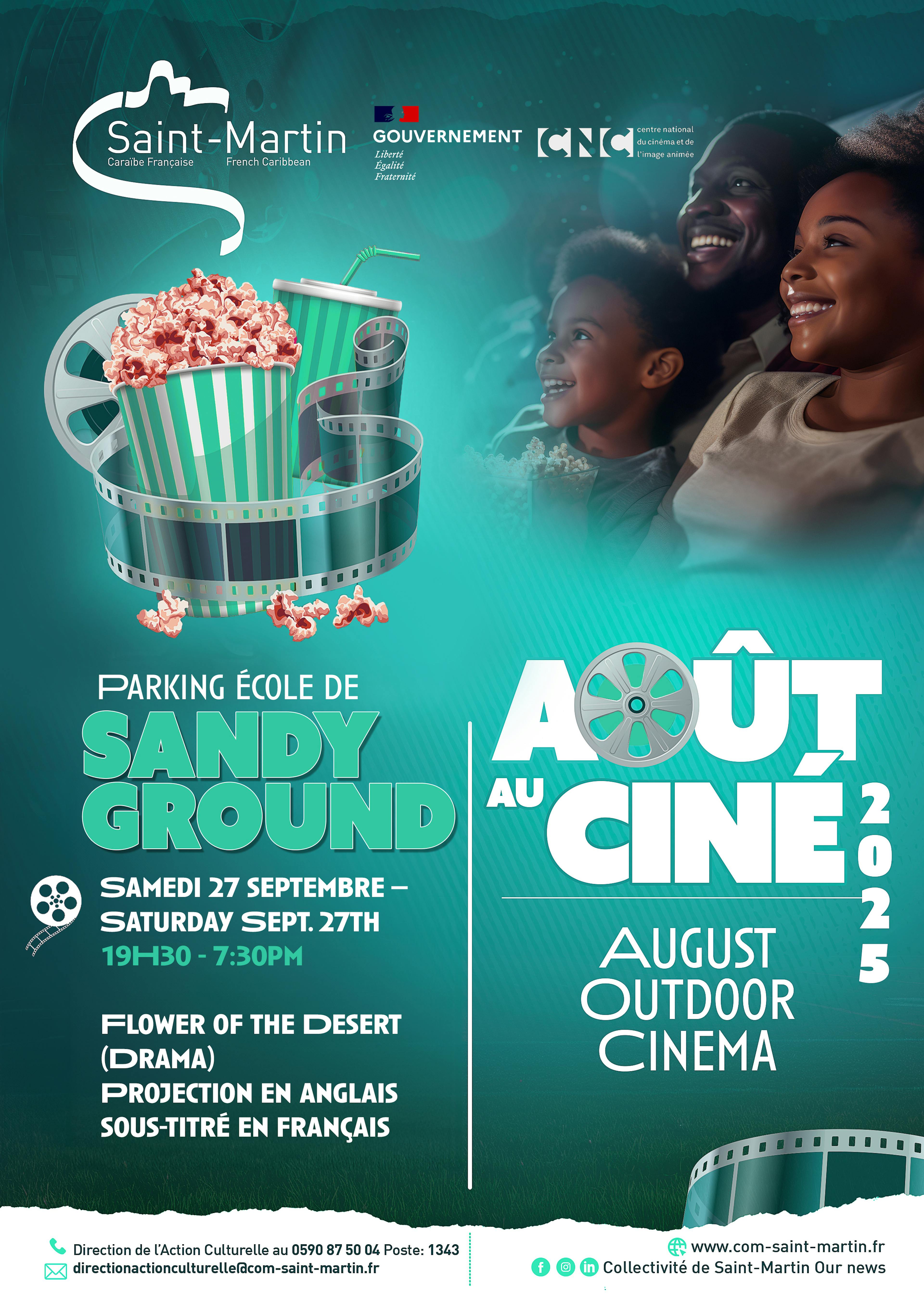 La nouvelle date est fixée au 27 septembre à 19h30, sur le parking des écoles de Sandy-Ground, pour la projection du film dramatique « Flower of the desert » en anglais et sous-titré en français.